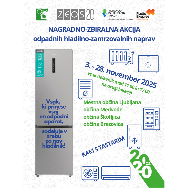 ZEOS, d.o.o. v sodelovanju z JP VOKA SNAGA d.o.o. v novembru organizira posebno zbiralno akcijo za stare hladilno-zamrzovalne aparate! 💪