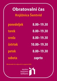 V času šolskih počitnic lahko knjižnico Šentvid obiščete: