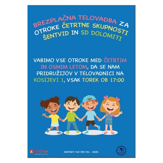 Smučarsko društvo Dolomiti vabi otroke med četrtim in osmim letom na brezplačno telovadbo v dvorani Kosijeva 1, Ljubljana - Gunclje.