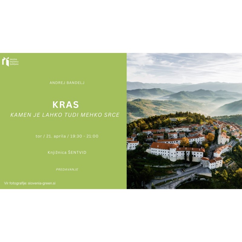 Knjižnica Šentvid vabi v torek, 21. aprila 2026 v prostore Knjižnici na predavanje Andreja Bandlja - Kras - kamen je lahko tudi mehko srce.