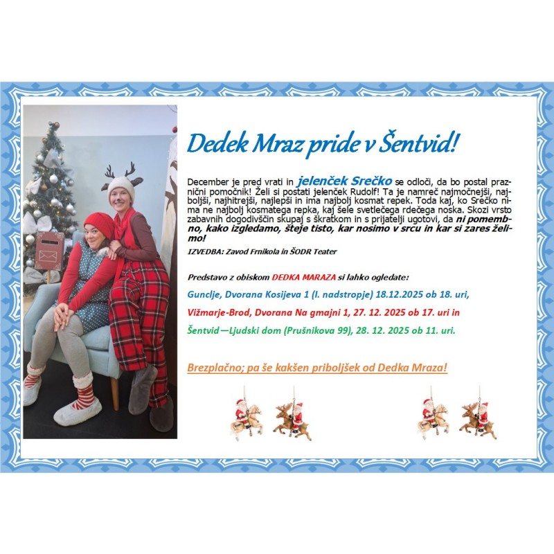 Ekipa abonmaja ŠODRČEK vabi na praznično predstavo z obiskom Dedka Mraza.