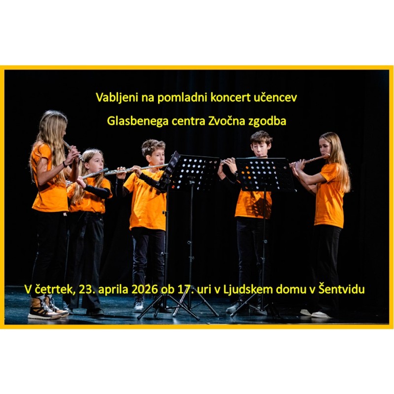 Glasbeni center Zvočna zgodba vabi v četrtek, 23. aprila 2026 ob 17. uri v Ljudski dom v Šentvidu na Pomladni koncert učencev GCZZ.
