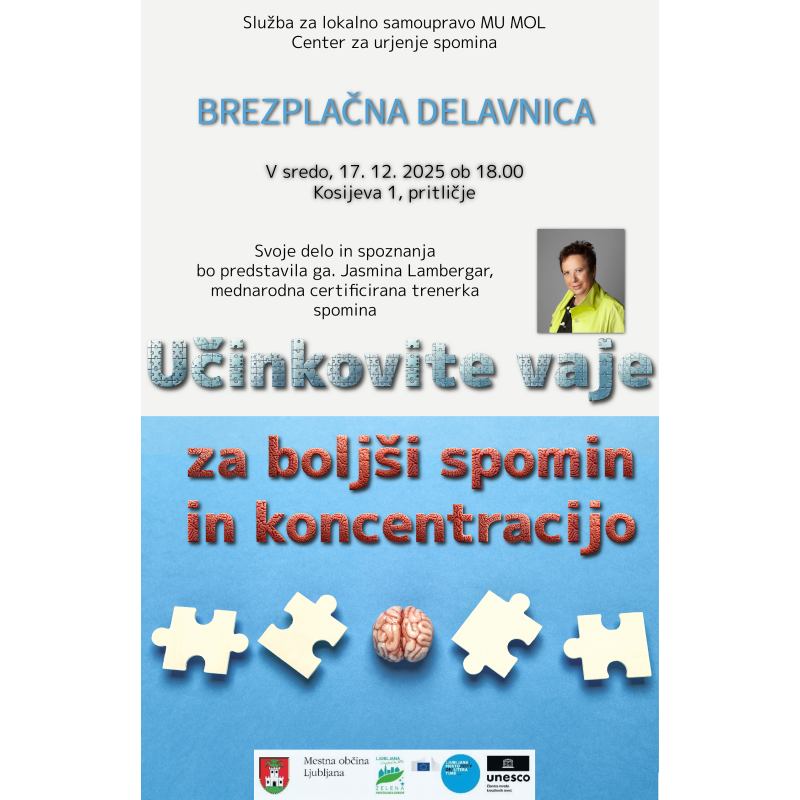 Vabljeni na delavnico 'Učinkovite vaje za boljši spomin in koncentracijo'.