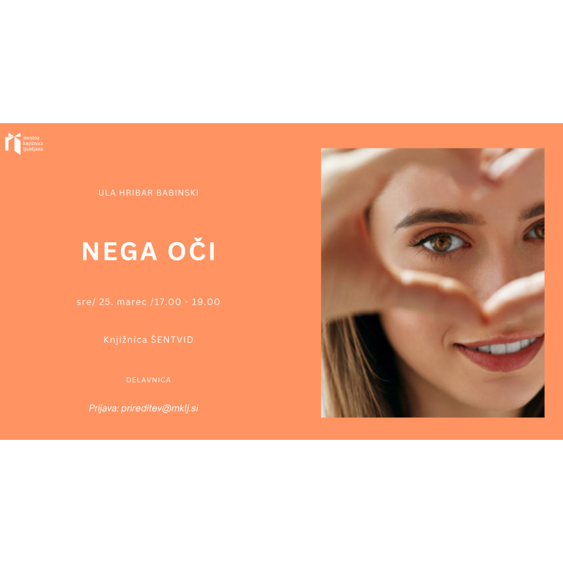 Knjižnica Šentvid vabi v sredo, 25. marca 2026 ob 17. uri v prostore knjižnice na marčevsko delavnico Ule Hribar Babinski: Nega oči.