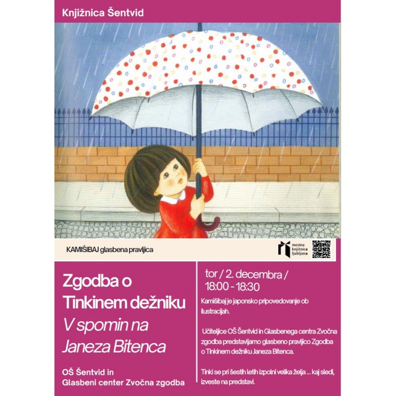 Vabljeni na glasbeno pravljico Janeza Bitenca v izvedbi učencev OŠ Šentvid in Glasbenega centra Zvočna zgodba.