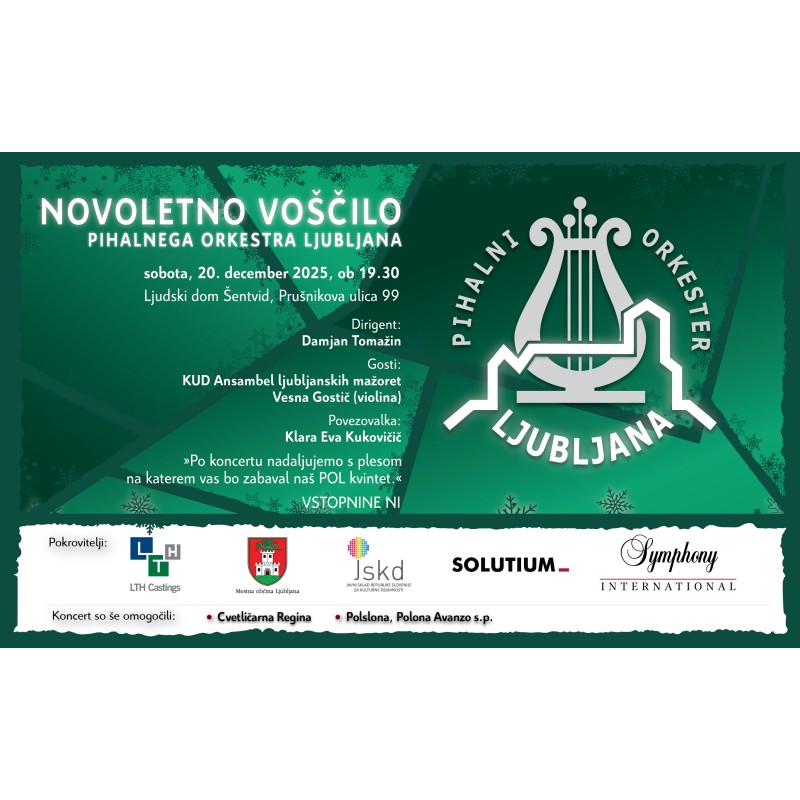 Pihalni orkester Ljubljana vabi v soboto, 20. decembra 2025 ob 19.30 uri v Ljudski dom v Šentvidu na sedaj še trdicionalni novoletno - božični koncert.